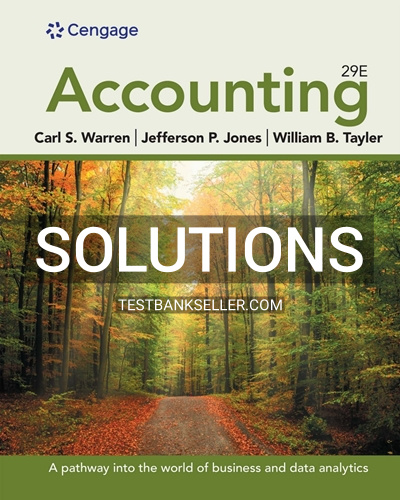 Enhance your accounting studies with the Solutions Manual for Accounting, 29th Edition by Warren. This comprehensive guide is an indispensable resource for mastering challenging concepts and excelling in your coursework. Packed with detailed solutions to end-of-chapter problems, this manual offers step-by-step explanations, helping you grasp complex accounting principles with ease. Whether you’re preparing for exams or completing assignments, this solutions manual provides clarity and confidence in your academic journey. Improve your problem-solving skills and deepen your understanding to boost your grades and enhance your learning experience. Don’t let challenging coursework deter your success—equip yourself with this essential study companion today!