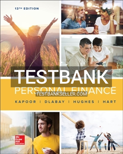 Unlock your potential in mastering personal finance with the Test Bank for Personal Finance 13th Edition by Kapoor. Designed to complement your classroom learning, this invaluable resource offers a comprehensive collection of diverse questions, reflecting key concepts and real-life scenarios. Each chapter is thoughtfully crafted to test your understanding and enhance your analytical skills, ensuring you’re well-prepared for exams. Whether you’re grasping fundamentals or tackling complex theories, this test bank is your trusted companion in navigating the dynamic world of personal finance. Invest in your academic success today and gain the confidence to excel in your studies with this essential study tool.