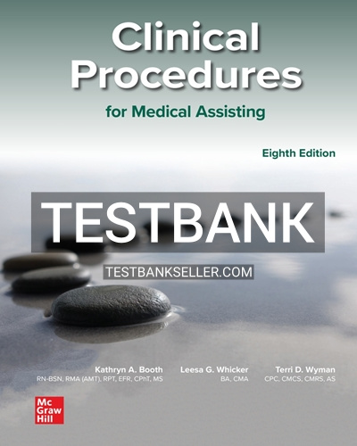 Unlock your full potential in medical assisting with the Test Bank for Medical Assisting 8th Edition by Booth. Designed to complement your studies, this essential resource offers a comprehensive collection of challenging questions tailored specifically for each chapter. Prepare efficiently with tailored practice scenarios and enhance your understanding of crucial topics. With detailed answers and rationales, you can identify areas for improvement and solidify your knowledge. This test bank is an invaluable tool for exam preparation, providing you with the confidence and skills needed to excel in your coursework and future career. Achieve academic success and ensure you’re ready for the real-world challenges of medical assisting.