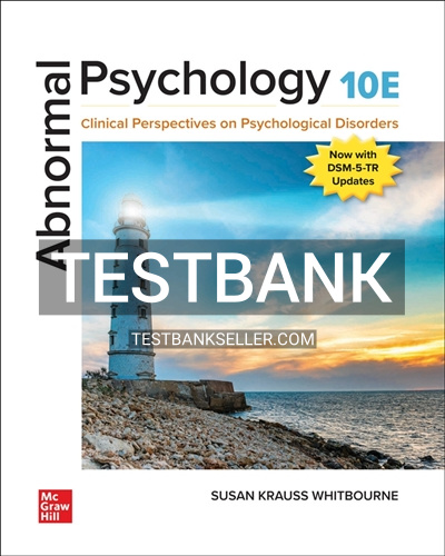 Unlock the full potential of your academic journey with the Test Bank for Abnormal Psychology, 10th Edition by Whitbourne. This essential resource is meticulously crafted to complement your study of abnormal psychology, providing a comprehensive array of practice questions that mirror the structure and complexity of real exams. With a wide range of question types, including multiple-choice, true/false, and essay questions, you’ll be well-prepared for any test scenario. Enhance your understanding of psychological disorders, therapeutic approaches, and research methods, ensuring a thorough grasp of key concepts. Dive into this indispensable tool and empower your success in mastering the intricacies of abnormal psychology.