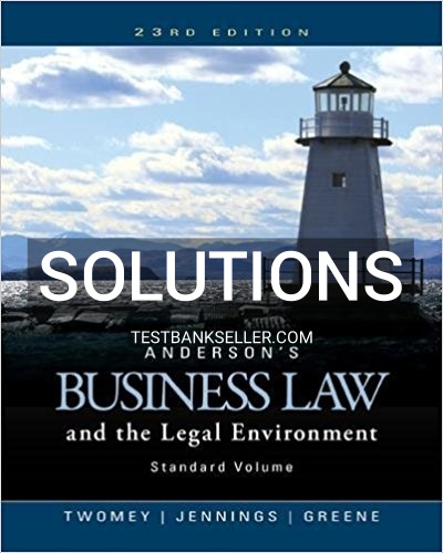 Solutions Manual for Andersons Business Law and the Legal Environment Standard Volume 23rd Edition Twomey