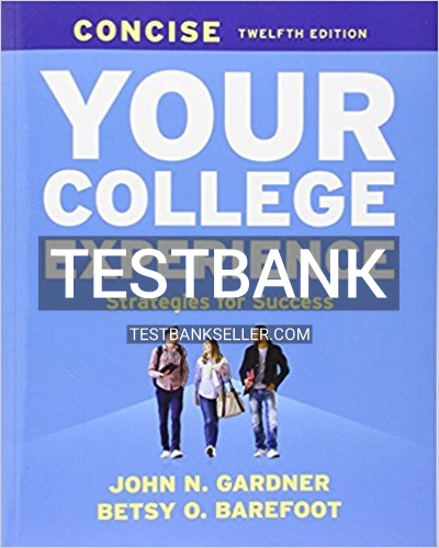 Unlock your academic potential with the Test Bank for “Your College Experience Concise 12th Edition” by Gardner. Crafted meticulously to complement your textbook, this test bank offers a comprehensive collection of exam-quality questions that align with the core topics and learning objectives of the course. Each question is designed to enhance understanding, reinforce key concepts, and sharpen critical thinking skills. Perfect for self-assessment and exam preparation, the test bank empowers you to gauge your knowledge accurately and efficiently. Elevate your study strategy, reduce stress, and approach exams with confidence. Your path to academic excellence begins here—make this test bank an essential part of your study toolkit.