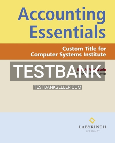 Unlock your potential with the Test Bank for Accounting Essentials Custom Title for CSI, 1st Edition by Weinstein. Designed to complement your study sessions, this essential resource offers a comprehensive collection of practice exams, detailed answers, and invaluable insights that align seamlessly with your course curriculum. Gain confidence with a variety of question types, mirror real exams, and strengthen your understanding of core accounting concepts. This test bank equips you to tackle complex topics, reinforces classroom learning, and ensures you’re prepared for any challenge. Elevate your study strategy and secure the grades you desire with this indispensable academic tool. Your path to success starts here.